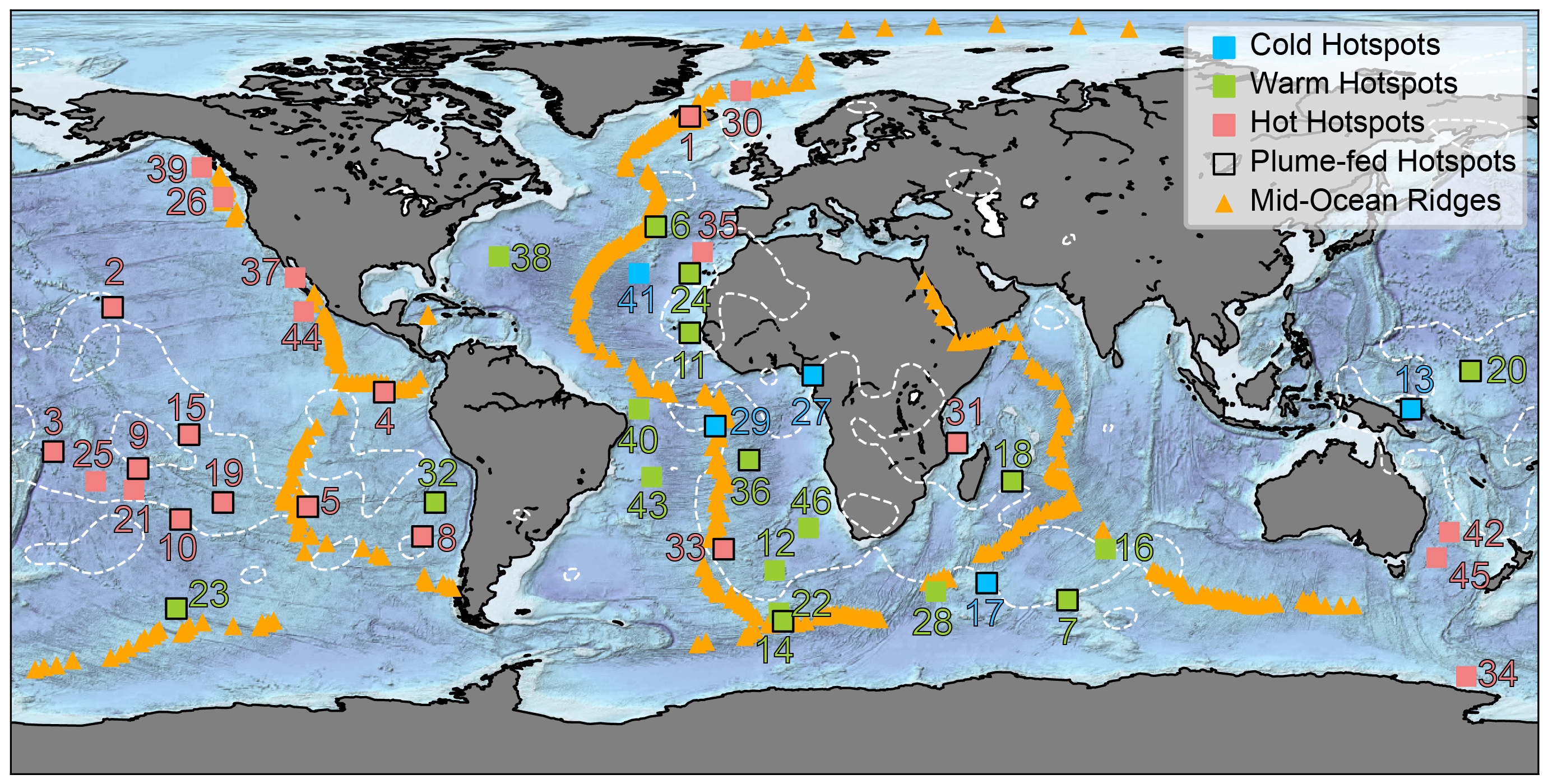 - Data-based interpretation of global volcanism, at hotspots (Bao et al. 2022; Cai et al. Under Review at Nature), mid-ocean ridges (Bao et al. 2024; Zhang et al. 2023; Wang et al. In preparation) and subduction zones (Li et al. 2023).